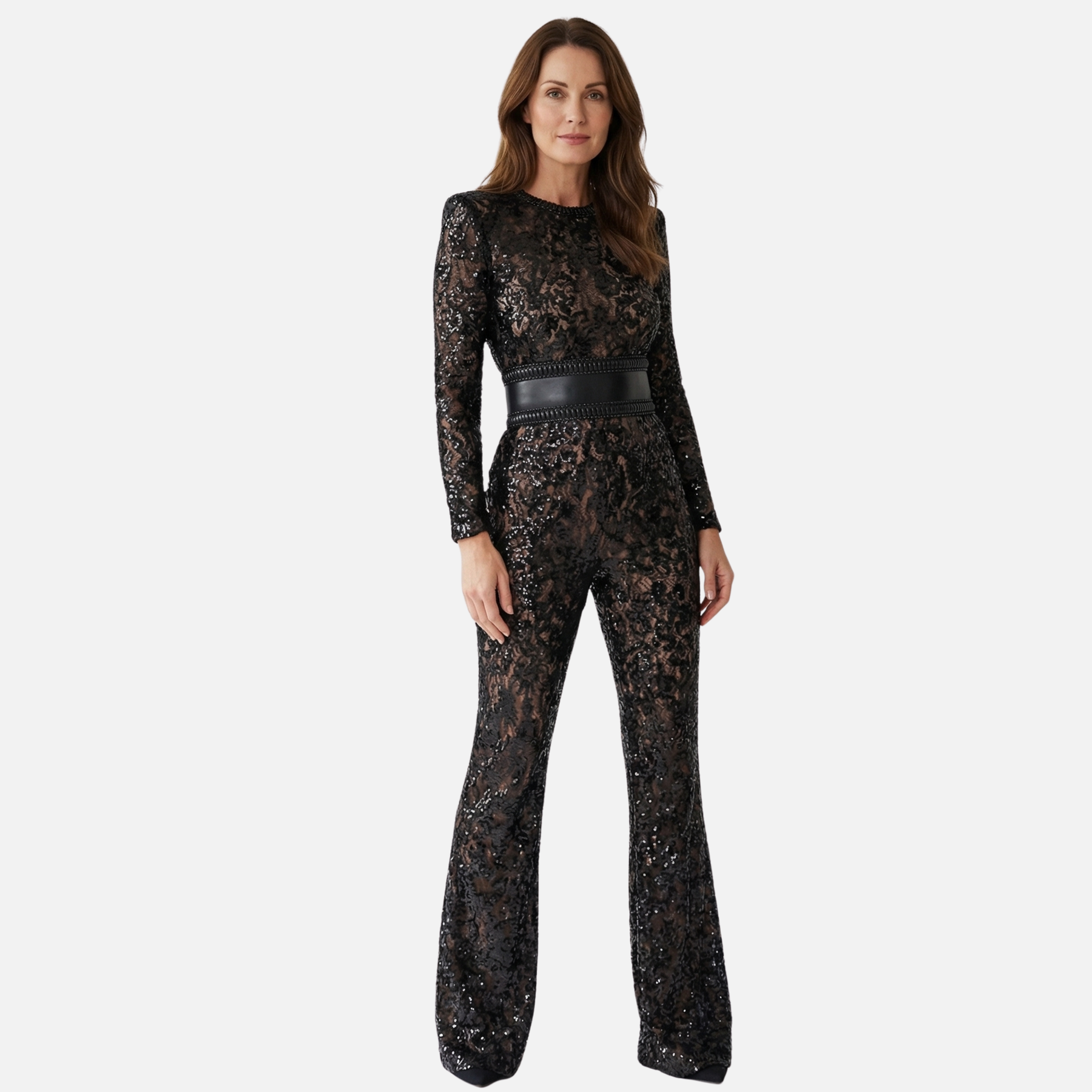 • Hoher Ausschnitt mit Wellenkante (Scalloped Neckline) für einen raffinierten, strukturierten Rahmen
