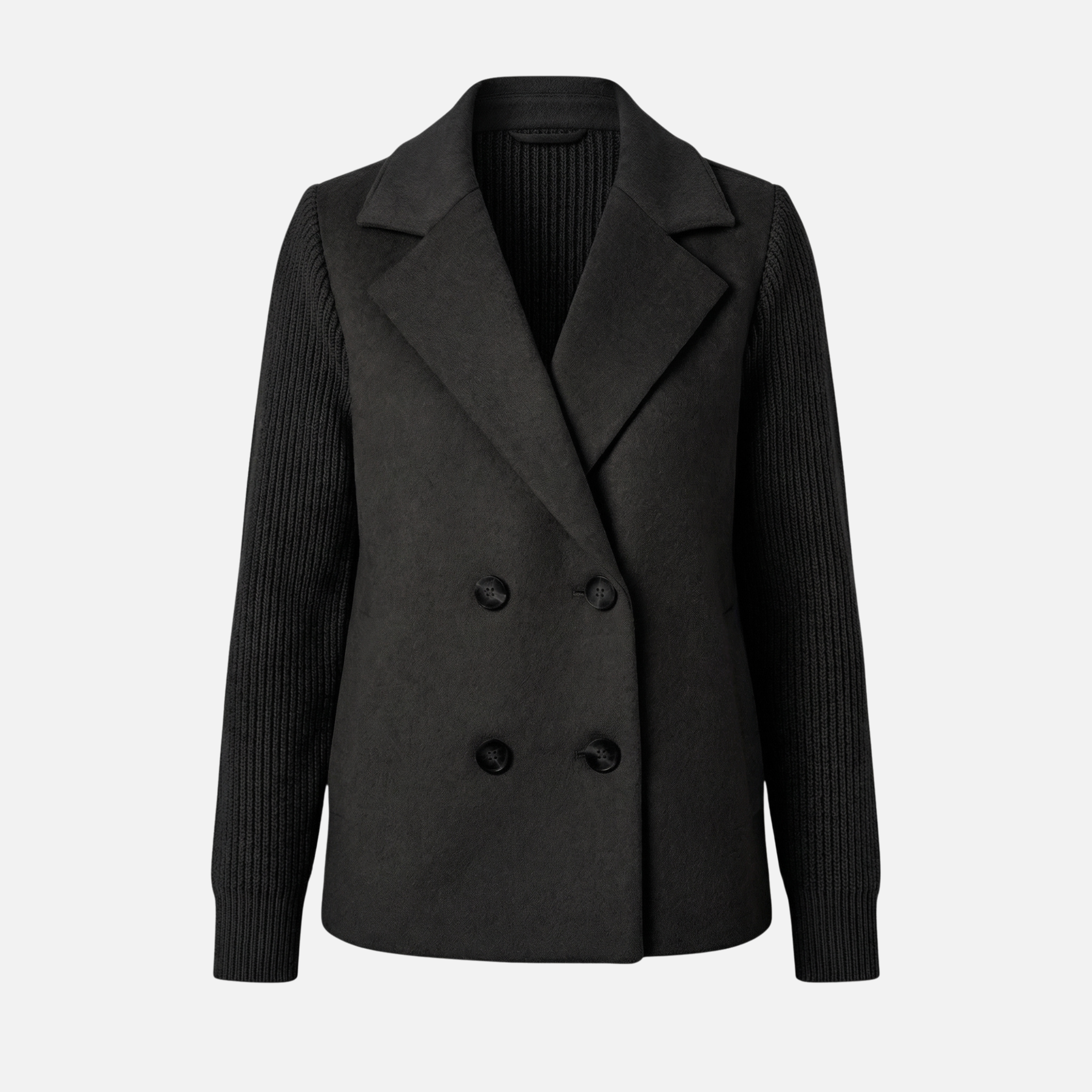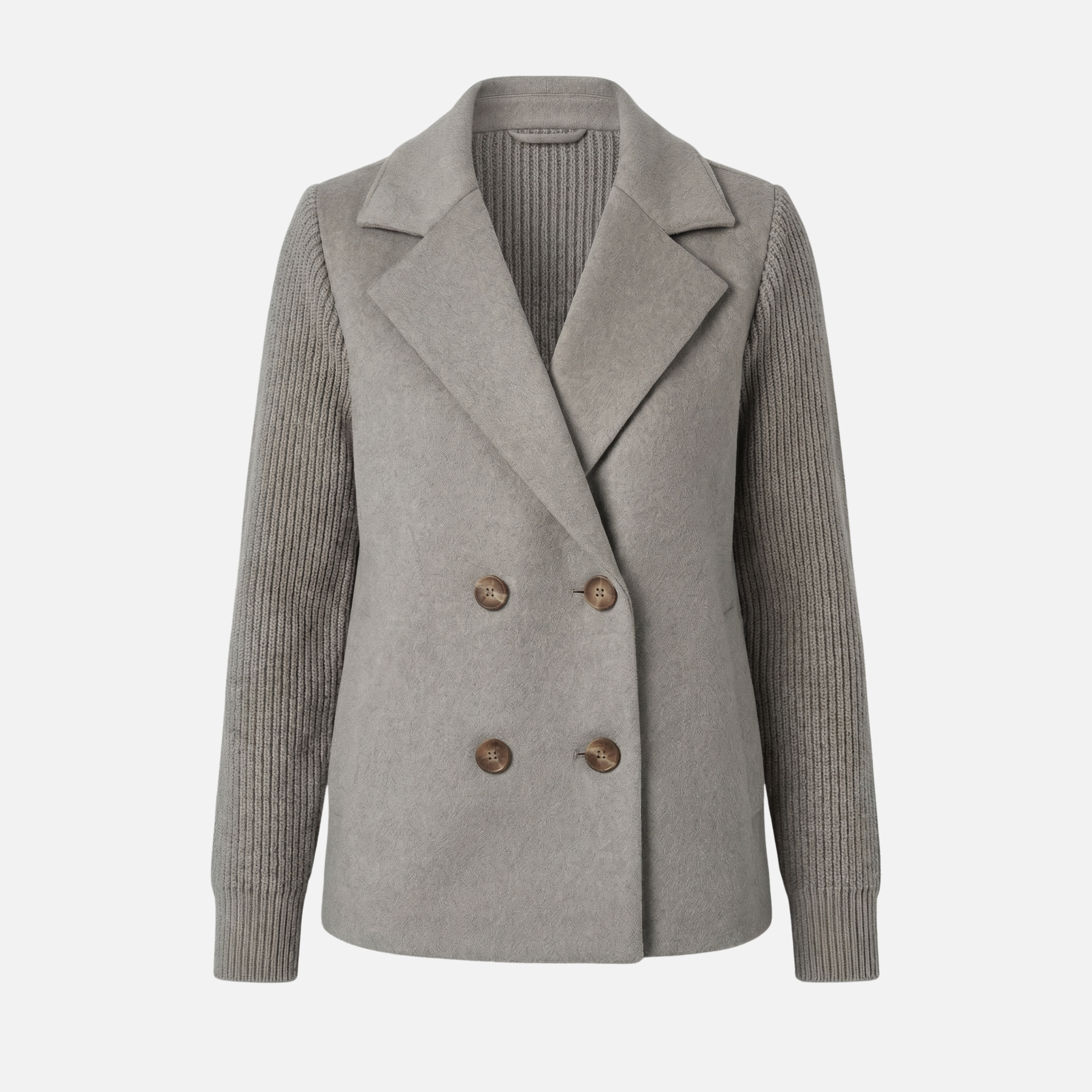Der strukturierte Blazer mit gerippten Ärmeln für Frauen vereint klassische Linien mit einem modernen Twist. Der Blazer zeigt eine strukturierte Passform aus neutralem Materialmix und wirkt durch die gerippten Strickärmel entspannt und stilvoll zugleich. Die langen Ärmel und das Revers mit Einkerbung sorgen für einen zeitgemäßen Look, der sich gut zum Schichten eignet.