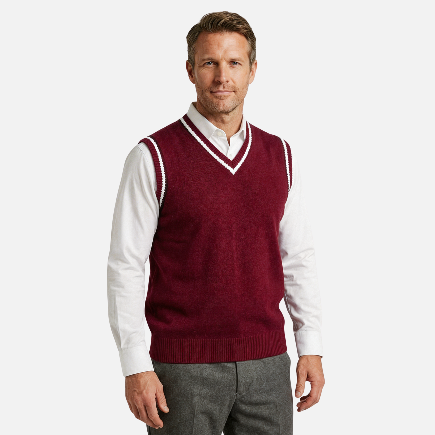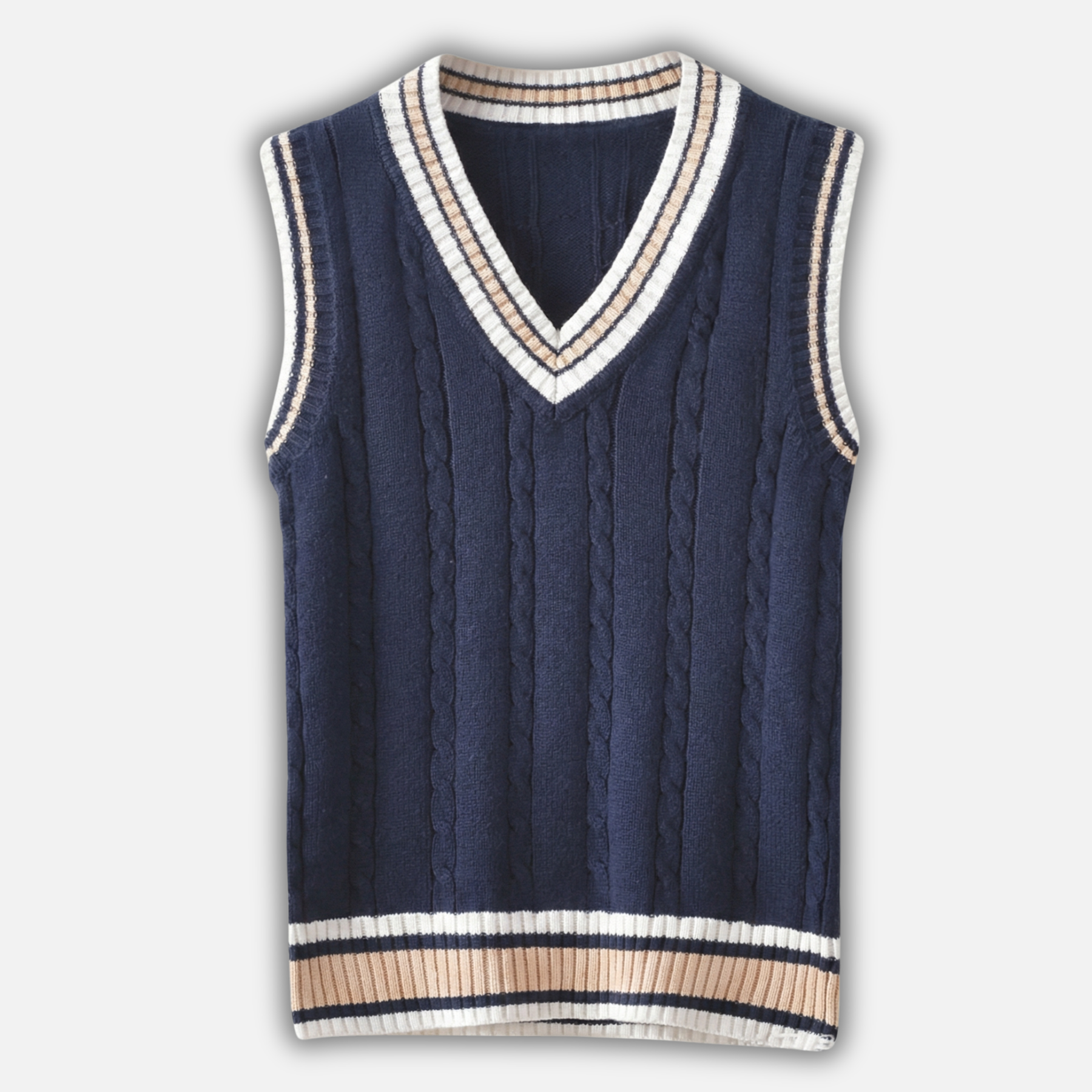 Klassisches V-Ausschnitt Weste mit Kabelstrickmuster für Herren