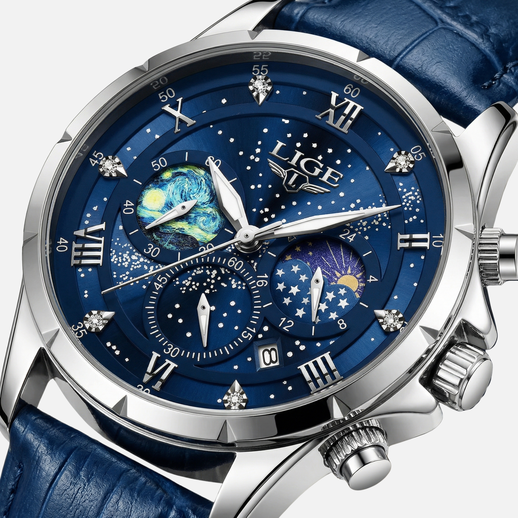 Mondphasen Chronographenuhr mit Datumsanzeige für Herren