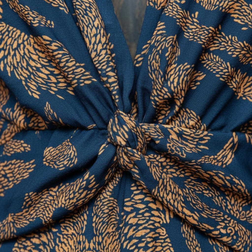 Dieses bedruckte Damen-Maxikleid vereint modernen Boho-Stil mit zeitloser Eleganz. Das durchgehende Muster setzt stilvolle Akzente, während der fließende Webstoff für eine entspannte, feminine Silhouette sorgt. Ein klarer V-Ausschnitt und lange Ärmel ergänzen das bodenlange Design harmonisch. Dank der lockeren Passform und des fließenden Saums eignet sich dieses vielseitige Kleid ideal für elegante Tageslooks oder legere Abendoutfits und ist in verschiedenen Größen erhältlich.