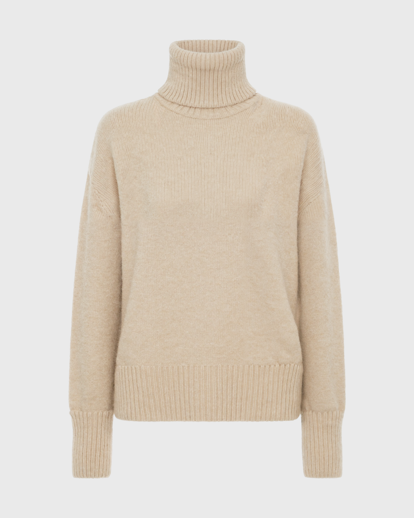 Rollkragen Lockere Passform Grobstrick Pullover für Damen | Gerippte Manschette